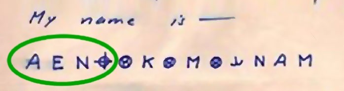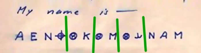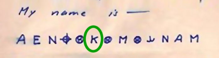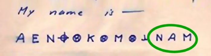 The first three symbols, ‘A E N,’ appear to correspond to ‘I A M.’