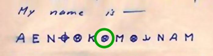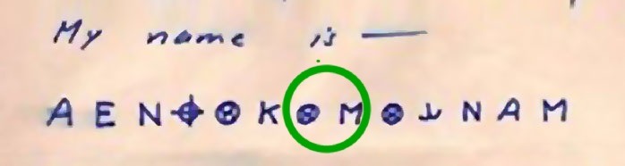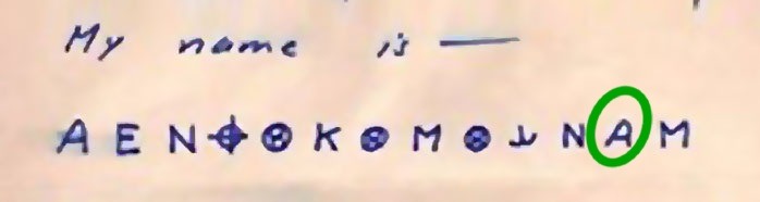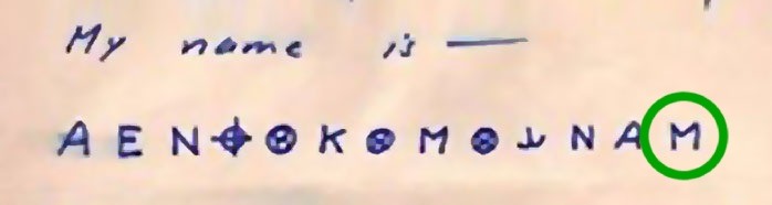 We have already deciphered the 13th and final symbol, ‘M’, which stands for ‘A’.